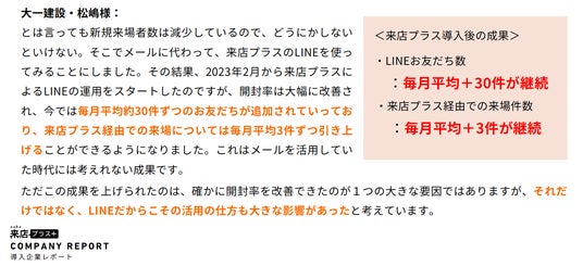 ギバーテイクオール株式会社(本社:東京都港区、代表取締役CEO 河野清博、以下当社)は、住宅・不動産業界向けLINE運用ツール『来店プラス』において、提携先の株式会社第一建設 ディーワンホーム様のLINE活用事例を成功レポートとして配信することをお知らせいたします。
