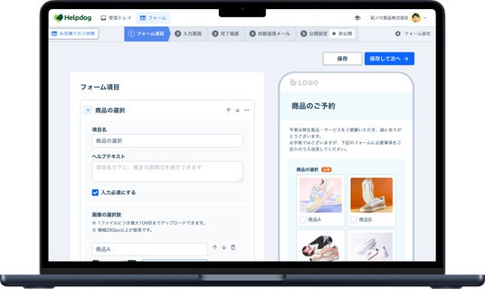 ヘルプドッグ フォームは、誰でも簡単にWebフォームを作成、公開することができる高機能なフォーム作成管理システムです。プログラミングの専門知識は必要とせず、ノーコードでフォームを作成できます。また、フォーム入力中の離脱を防ぐEFO(エントリーフォーム最適化)機能や執拗なフォーム経由の営業をブロックする機能、Gmailなどのフリーメールや使い捨てメールの入力を制限する機能など、ビジネスを強力に推進する機能を搭載しています。月額0円でフォーム作成数、ユーザー数が無制限で利用できる無料プランを提供。
