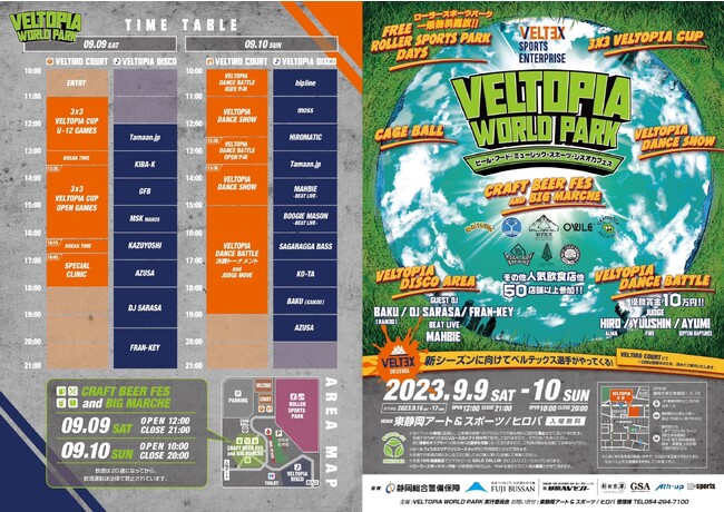 株式会社VELTEXスポーツエンタープライズ社は2023年9月9日(土)10日(日)に東静岡アート&スポーツ/ヒロバにてVELTOPIA WORLD PARKを開催いたします。本イベントは自社が東静岡アート&スポーツ/ヒロバ実行委員会より管理/運営を受託している東静岡アート&スポーツ/ヒロバに新たな賑わいを創出することを目的としたイベントとして企画いたしました。