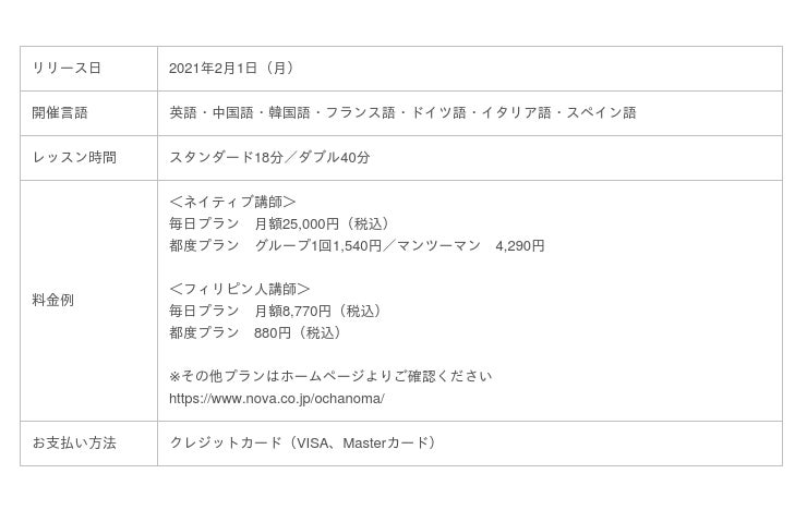 NOVA公式ホームページ:https://www.nova.co.jp/