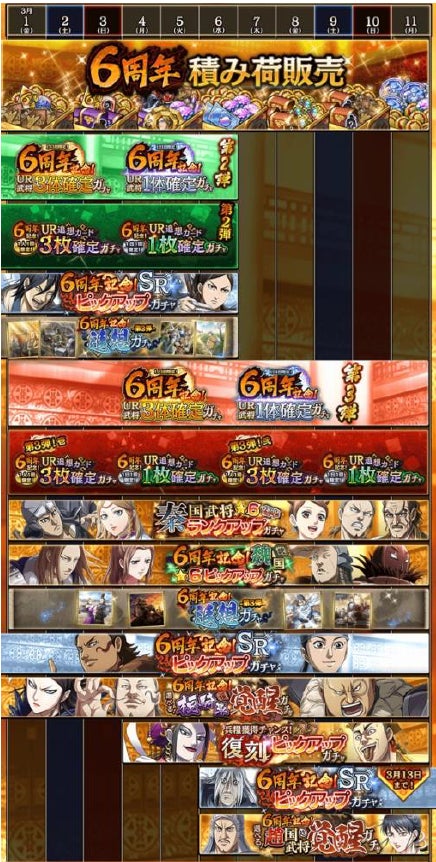 その3【6周年記念!UR武将確定ガチャ第3弾開催!】