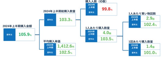 ●2024年上半期における一人あたりの購入数量が前年比97.2%に減少