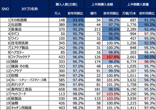 以上がダイジェスト版となります。レポート本編ではより詳細な分析、購買の構造分析や月別の変化、46カテゴリの一覧などもご覧いただけます。