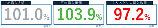 ●値上げの影響か、平均購入単価が前年比103.9%に上昇