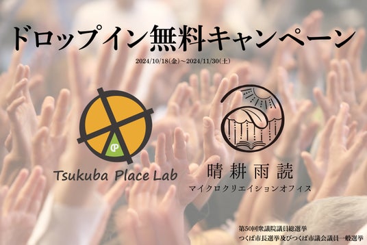 2024/10/27(日)投開票の衆議院議員総選挙、つくば市長選挙及び市議会議員一般選挙にて投票された方はTsukuba Place Lab、晴耕雨読のドロップインを一度無料でご利用いただけます。