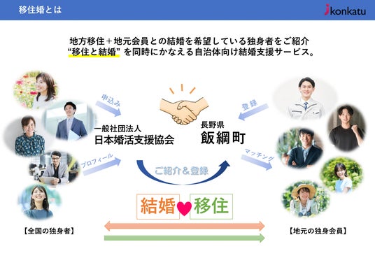 一般社団法人日本婚活支援協会(所在地:東京都港区、代表理事:後藤 幸喜)は、移住先と結婚相手を同時に紹介する「移住婚」の提携先(受け入れ自治体)として、令和6年5月より長野県飯綱町の受け入れが開始したことをお知らせします。
