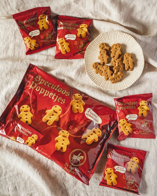 オランダ生まれの〈デラウテル〉は、スパイスクッキーを専門とするデラウテル家のビスケットブランド。伝統的なカラメルビスケット・スペキュロスをこびとのようなジンジャーマン型に抜いたミニドール カラメルビスケットは、かためでボリボリとした食感と香ばしいカラメルフレーバー、心地よいスパイスの絶妙なバランスが特徴の、お子さまでもお召し上がりいただける小さなビスケット。見た目のかわいらしさだけでなく、味わいも誰もが好きになる魅力が詰まっています。