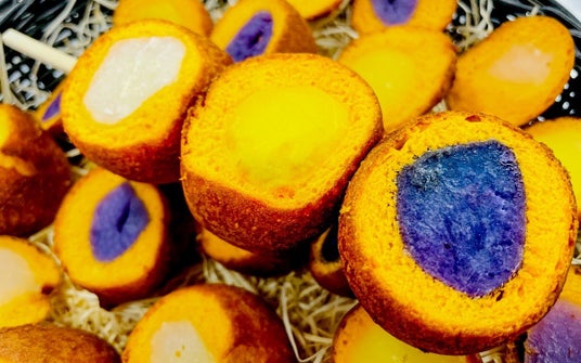 数量限定で販売した大ヒット商品「プレミアムあげいも」が今年も登場!鮮やかな紫色の「シャドークイーン」、栗のような風味が特徴の「デストロイヤー」、そして元祖あげいもに使われている「羊蹄山麓男爵いも」、カラフルな3種類のじゃがいもが一本の串に揃いました。今年も、衣が鮮やかなハロウィーンオレンジで季節感たっぷり。数量限定での販売となりますので、この特別な味わいをお見逃しなく!