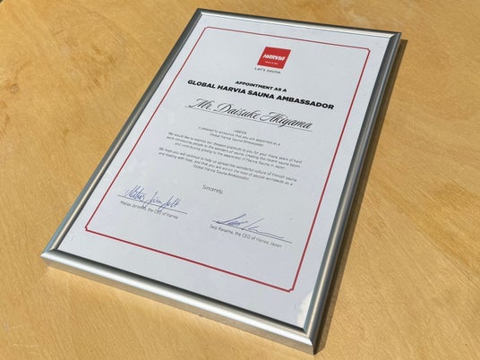 今後もサウナの素晴らしい文化と「熱」による癒しを世界中の人々に広めてくださることを期待しております。そして、グローバル ハルビア サウナ アンバサダーとして、さらなるご活躍をお祈り申し上げます。