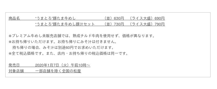2020年の松屋の新メニュー第1号は、豚・牛・玉子による夢の共演!2020年 1月 7日(火)午前10時より