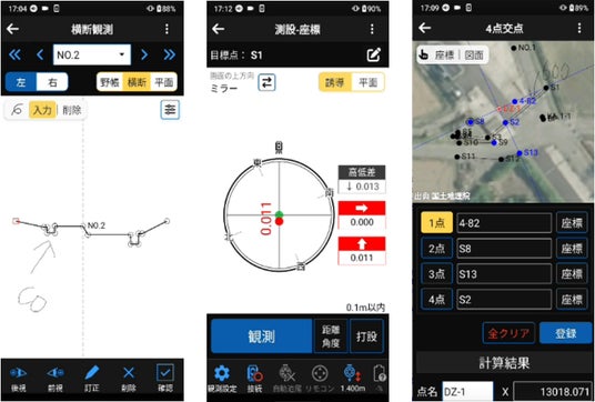 左:電子野帳観測 中:現況観測 右:縦断観測