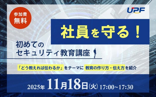 リスクマネジメント分野のコンサルティングサービスを提供する株式会社UPF(本社:東京都中央区、代表取締役:仲手川 啓、以下当社)は、2025年11月18日(火)17:00より、社員向けセキュリティ教育の設計と実践をテーマとした無料オンラインセミナーを開催いたします。