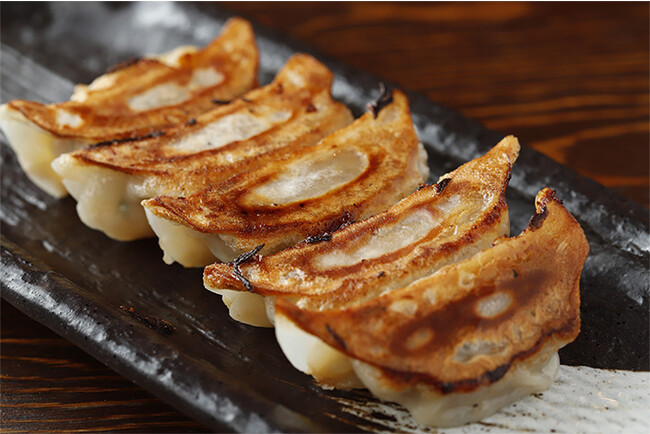 お酒に合う餃子を求めてたどり着いたオリジナルレシピは、もっちり感の強い銘柄豚を使用し、昆布、乾燥シイタケ、鰹節、ニンニク、九鬼の胡麻油の旨味を重ね、黒コショウを利かせ、皮の厚さにもこだわりました。何もつけずにそのままお召し上がりください。