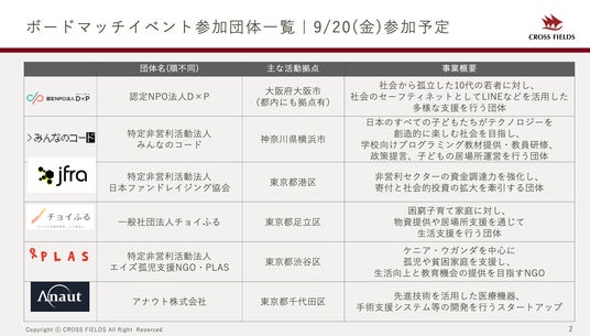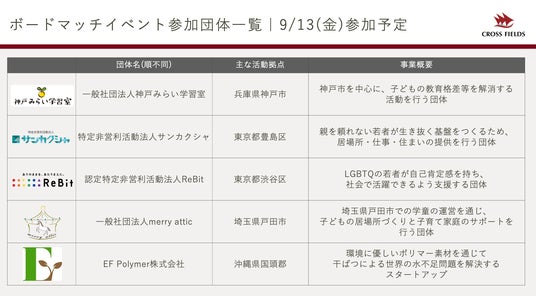 クロスフィールズ、「ボードマッチイベント」を経済同友会と共同で開催