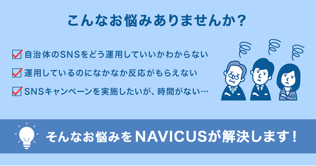 「自治体のSNSをどう運用していいかわからない」「なかなか反応がもらえない」そんなお悩みをNAVICUSが解決します!