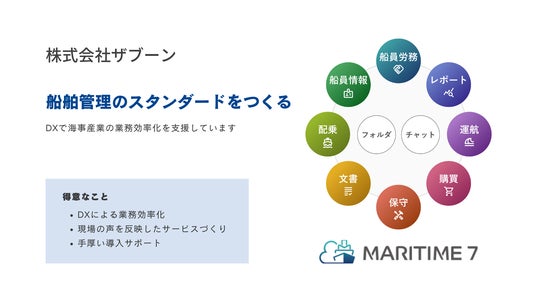 船舶管理プラットフォーム「MARITIME 7」を開発・運営する、株式会社ザブーン(本社:東京都港区新橋、代表取締役:戸高克也)は、「船舶管理業務におけるPMS機能の実装」プロジェクトが、愛媛県が推進する産業振興プロジェクト「トライアングルエヒメ2.0 令和7年度新規採択事業」に採択されたことをお知らせします。