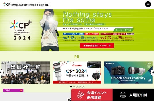 CP+とは一般社団法人カメラ映像機器工業会(CIPA)主催のカメラと写真のワールドプレミアショーです。2010年から年1回のペースで開催されています。ビジネスユーザーとコンシューマーを対象に、最新の製品や技術を紹介し、産業と写真映像文化のさらなる発展に貢献する国際的な「総合的カメラ映像ショー」で、写真の街ヨコハマから、「撮る」「見る」「つながる」写真の楽しさをあらゆるかたちで提供し、カメラ・写真映像産業の拠点である日本から世界へ、写真映像文化を包括的に発信しています。