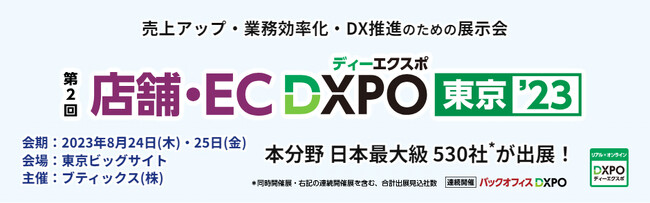 DX分野日本最大級の商談型展示会です。「営業・マーケ」、「広告・販促」、「店舗・EC」の分野から出展する数多くの会社の製品やサービスを比較・検討することができます。その場でデモ体験が開催されており、ブース内で商談まで行える点が大きな特徴の1つです。