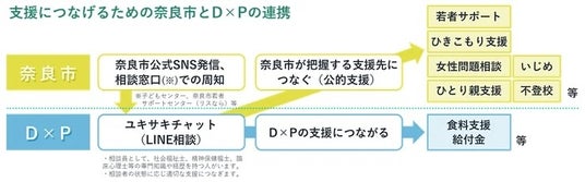 認定NPO法人D×P(ディーピー)(大阪市中央区、理事長:今井紀明 以下D×P)と奈良市は、D×Pが運営するLINE相談事業、ユキサキチャットを通してユース世代(13~25歳)の支援を推進していく連携協定を締結しました。
