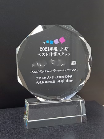 1,400台のトラックと2,300人超のドライバーで毎日500万人の食生活を支える物流インフラ企業、アサヒロジスティクス株式会社(埼玉県さいたま市大宮区/代表取締役社長 横塚元樹)は、2021年度より倉庫内での仕分け作業を行う作業スタッフ(以下、作業スタッフ)を対象とした『ベスト作業スタッフ表彰』制度を新設いたしました。当社では従来、サービスドライバー向けの表彰制度はございましたが、作業スタッフを対象とした表彰制度は設けていませんでした。現在当社では3,000人超の作業スタッフが在籍しており、商品の保管・仕分け作業を行うセンター運営からトラック運行を一括して行う自社オペレーションが特徴の当社にとって、作業スタッフは大変重要な位置づけとなります。今回新設した表彰制度では、日々ともに働く仲間からの「頑張っているスタッフ」としての投票により選出される方法をとり、日頃の勤務姿勢を一番近くで見ている仲間に評価されることで、モチベーションアップにつなげるとともに、チームとしての一体感や団結力を向上させることを目的としています。この度、第一回にあたる2021年度上期の表彰が各拠点にて行われました。