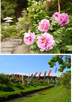 地元では有名なこいのぼりスポット。新緑がまぶしく心地よい季節