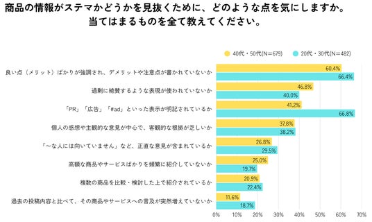 20~30代の66.8%が「PR表記」をチェック。世代によりチェックポイントは異なる