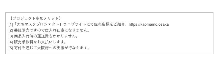 引き続き大阪の街をマスクで救う「大阪マスクプロジェクト」を進めていきます。
