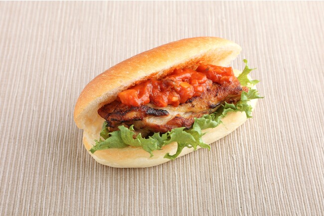 ジューシーな炭火焼きチキンに完熟トマトソースを合わせた食べ応え抜群のコッペパン。炭火焼きチキンと旨味が詰まったトマトソースがよく合います。
