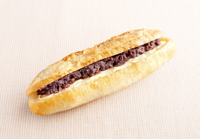 パリパリンのフランスパンにバターをたっぷり塗り、その上に粒あんをぎっしり敷き詰めました。バターの塩気があんこの甘さをよく引き立てます。