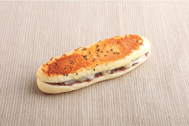 粒あんと求肥をバターと一緒にサンドしたスイーツパニーニ。表面の焼けたチーズが中のあんことよく合い、まるでたい焼きを食べているようなカリッと香ばしい味わいに仕上げました。