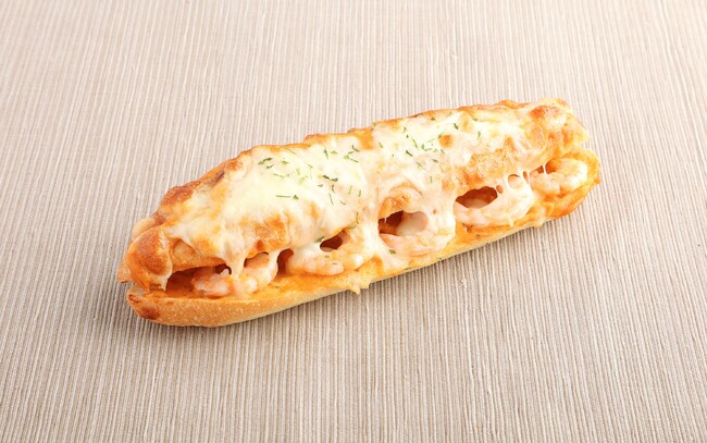 ビスクソースを塗ったフランスパンにぷりぷりのエビをサンドし、モッツァレラチーズと焼き上げました。とろけたチーズとクリーミーなビスクソースが相性抜群!