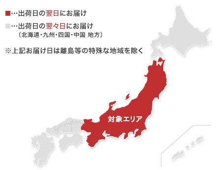 営業日15時までのご注文は、最短で即日出荷※一部離島については、出荷日より3日以上かかりますので、ご了承ください。お届けの時間帯は地域によって異なります。