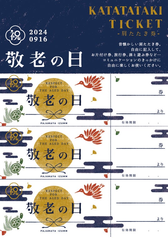 オリジナルパジャマブランド「パジャマ屋IZUMM」(https://www.pajamaya.com/)を運営する株式会社フレックス(代表:熊坂泉、本社:神奈川県相模原市)は、ご本人様受け取りでご注文のお客さまに「肩たたき券」を同梱するサービスを開始しました。 敬老の日に合わせ、パジャマ屋IZUMMオリジナルの軽くて暖かい羽織りものやパジャマと一緒に「肩たたき券」をプレゼントすることで、新たなコミュニケーションのきっかけをつくり、より一層敬老の日を特別なものにしていただけます。