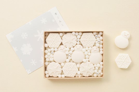 開けた瞬間、思わずにっこり。愛らしい雪だるまの和三盆糖入りの押し物の和菓子が、今年も登場いたしました。毎年5,000箱以上お作りしてもすぐに完売する、大人気商品です。