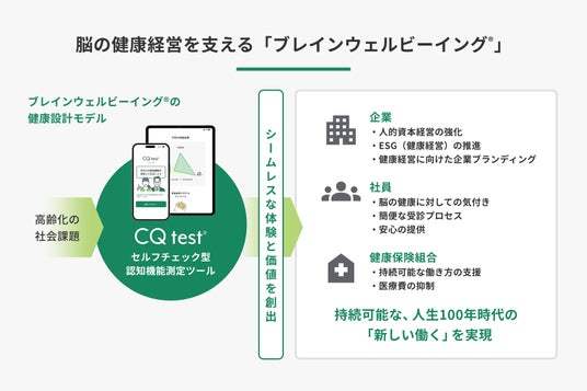 今回の受賞は、CQ test(R)が企業の健康経営における重要なツールとして位置づけられることを示しており、今後はさらなる導入拡大が予想されます。特に、企業が従業員の健康状態を早期に把握し、脳の健康維持をサポートすることで、生産性向上や医療費削減に寄与します。また、社会全体においても、認知機能低下の早期発見や予防を促進し、健康寿命の延伸や高齢化社会における生活の質の向上に貢献することが期待されています。