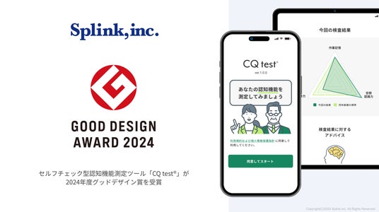 ブレインヘルスケア領域の医療AIスタートアップ、株式会社Splink(本社:東京都港区、代表取締役:青山 裕紀、以下「Splink」)は、当社が開発・提供するセルフチェック型認知機能測定ツール「CQ test(R)」(https://www.brain-life-imaging.com/cqtest.html)がこのたび「2024年度グッドデザイン賞」(主催:公益財団法人日本デザイン振興会)を受賞したことをお知らせいたします。なお、本受賞は「認知機能テスト」として初めての受賞となり、高齢化が進む現代社会における健康経営や人的資本の維持に貢献する革新的なデザインが評価されました。
