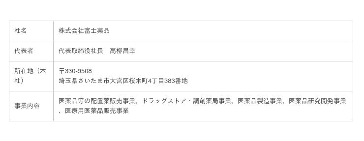 【株式会社富士薬品会社概要】 URL:https://www.fujiyakuhin.co.jp