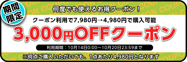 ■通常売価7,980円がクーポン利用→4,980円で購入可能!※期間内に何度でも利用可能!