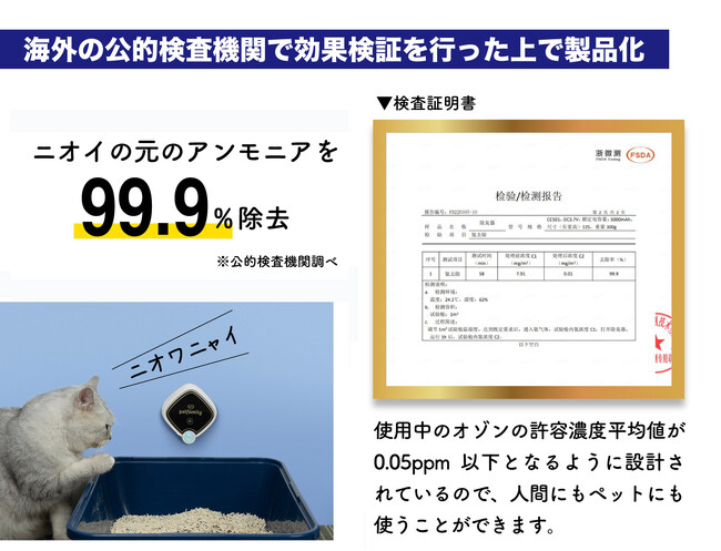 ニオイの元のアンモニアを【 99.9%除去 】※公的検査機関調べ