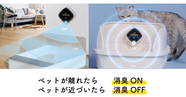 一時停止モードでは30秒ごとに連続して検知を行うため、ペットが離れたらすぐに消臭を再開できます。