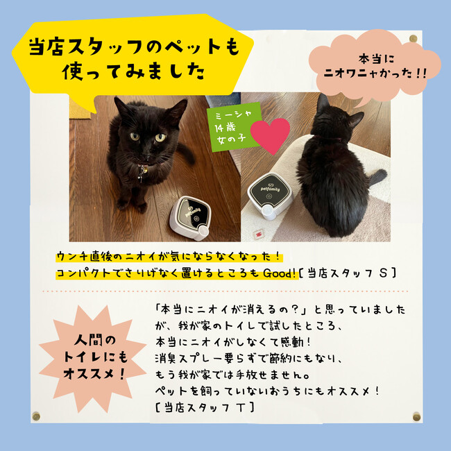 製品化にあたり、ペットがいるスタッフの家族に商品の効果を試してもらいました。
