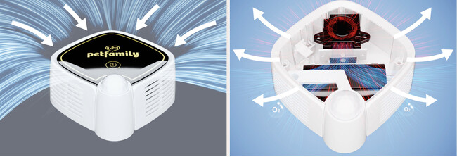 臭いの原因物質をオゾンで分解、臭わない空気に変えて排出する、『ペット』と『環境』と『お財布』にやさしい脱臭器です。