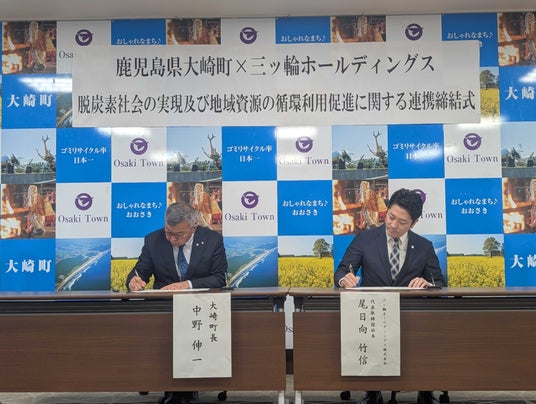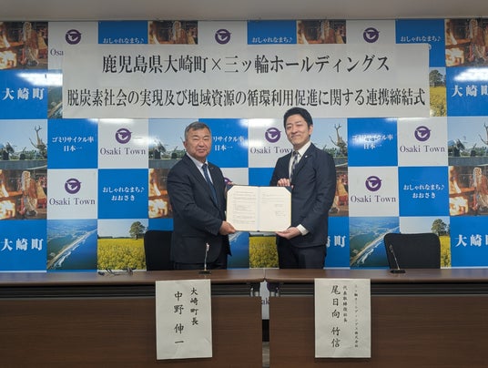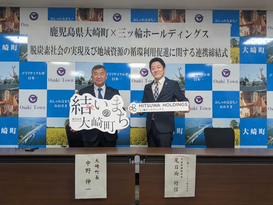三ッ輪ホールディングス株式会社(本社:東京都新宿区、代表取締役社長:尾日向 竹信、以下「三ッ輪ホールディングス」)は、2026年3月23日、鹿児島県大崎町(町長:中野 伸一、以下「大崎町」)と「脱炭素社会の実現及び地域資源の循環利用促進に関する連携協定」を締結したことをお知らせいたします。本協定を通じて、三ッ輪ホールディングスが各地の自治体との連携により蓄積してきた脱炭素に関する専門的知見を活用し、同町が掲げる「サーキュラービレッジ構想」の実現に向け、自然エネルギーの地産地消や環境価値の創出・活用をはじめとする各種施策を推進し、持続可能な地域づくりに貢献してまいります。