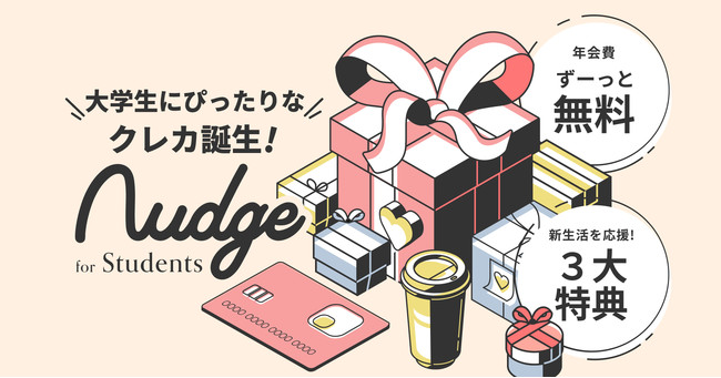 日本におけるチャレンジャーバンクを目指すナッジ株式会社(本社:東京都千代田区、代表取締役社長:沖田 貴史、以下「ナッジ」)は、次世代型クレジットカード「Nudge(ナッジ)」において、大学生・専門学生を対象とした「Nudge for Students」を4月1日より開始致します。