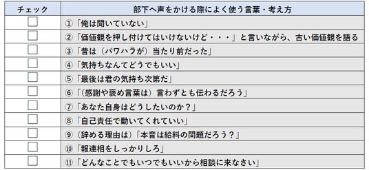 ☑が6個以上 … 自分が若手だった頃と、今の部下が違うという認識を持ち、部下とのコミュニケーションの仕方を根本的に見直す必要があります。
