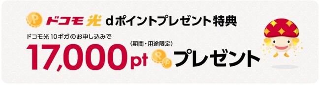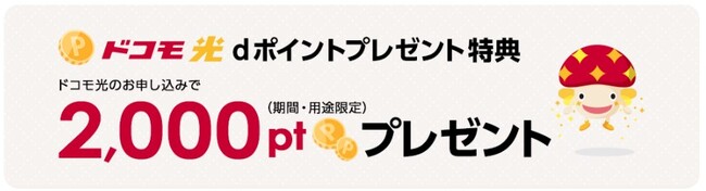 ※「ドコモ光」dポイントプレゼント特典の適用条件・注意事項などについてはキャンペーン詳細ページにてご確認下さい。