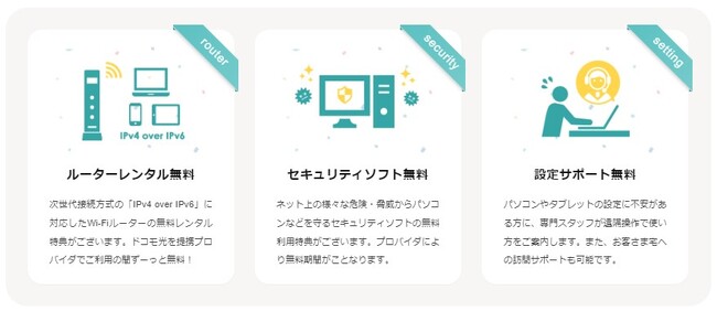 ※ 上記特典の実施プロバイダについては、プロバイダ情報ページからご確認ください。各プロバイダにより実施特典が異なりますのでご注意ください。