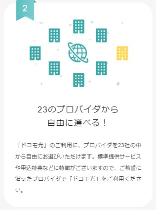 提携プロバイダは23社で自由にお選びいただけます。多くのプロバイダがIPoE IPv4 over IPv6通信に対応し、遅延のおきにくい快適なネット接続が可能です。