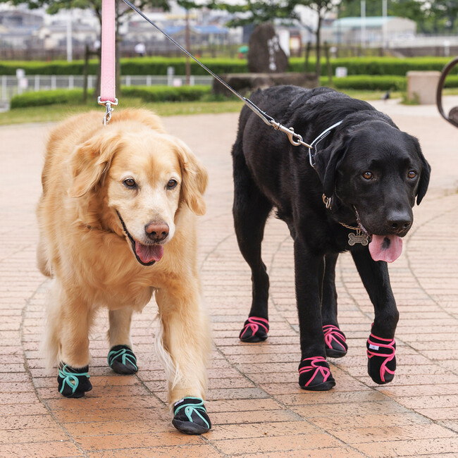 冬の凍結した道や暑い夏のアスファルトから肉球を保護するスクワランオイル配合の高機能な犬の靴です。よく伸びるので履かせやすく脱がせやすいです。ピッタリサイズをチョイスすると愛犬の足にフィットします!グリップ力が弱ってきたシニア犬にもオススメです。