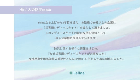 3年目を迎えたFellneが災害用レディースキットへの新たな付加価値として制作し、サービスを開始するのが『働く人の防災BOOK』です。